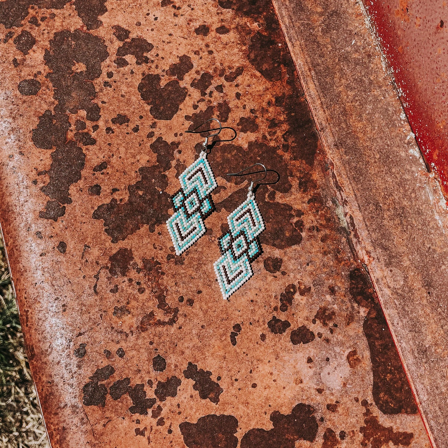 "Cora" Medium White and Turquoise Southwestern Beaded Earrings